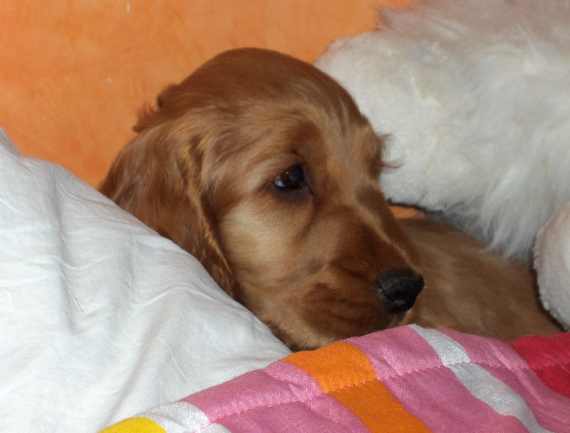 Une super portée pour mon amour de rouquine!!! Les chiots sont en pleine forme et la mise bas fut idéal pour Tea. Les noms des bébés sont cette fois tous en rapport avec la musique...